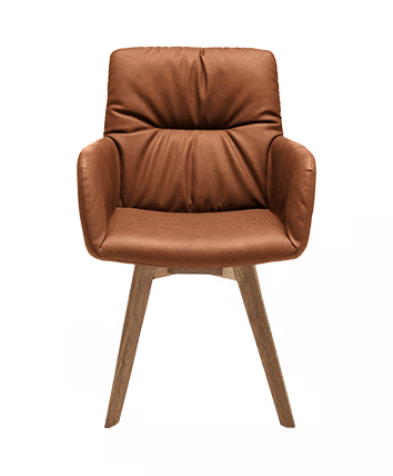 Choisis d'abord ta coque d'assise et décide si tu souhaites des accoudoirs ou non. Ensuite, choisis ton revêtement entre le similicuir et le tissu dans divers coloris pour accorder le tout à ta table et à ton intérieur. Enfin, tu as le choix entre quatre types de pieds différents, disponibles en chêne massif ou en métal.