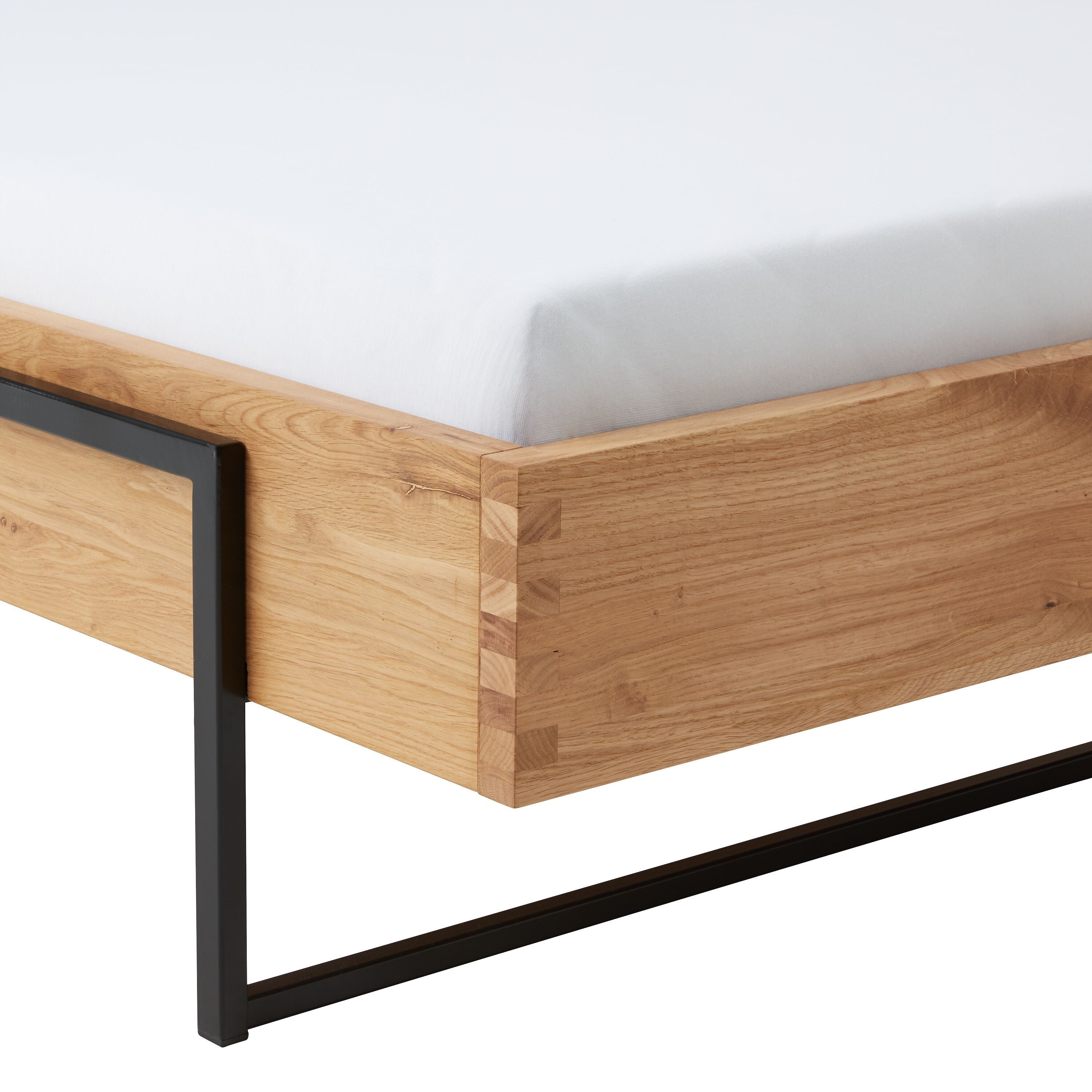 Le mobilier pour chambre à coucher DON: des meubles en bois massif aux lignes minimalistes qui allient solidité et élégance. L’association de l’acier noir et du chêne ou noyer massif confère à l’ensemble une impression de solidité tout en offrant des lignes résolument contemporaines.