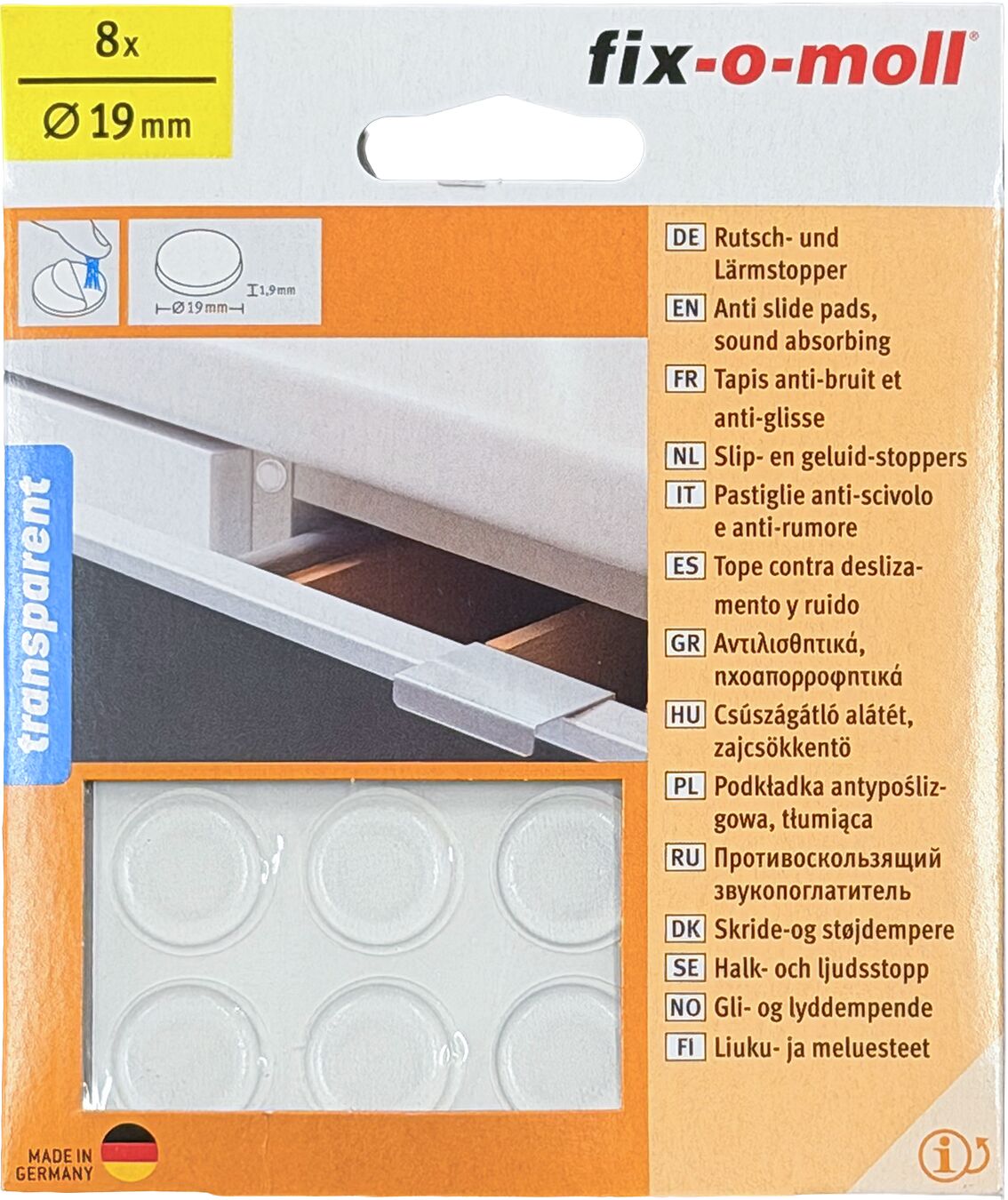 Fix-O-Moll Patins anti-gliss & bruit 1.9 mm / Ø 19 mm 8 x Patins anti-gliss & bruit