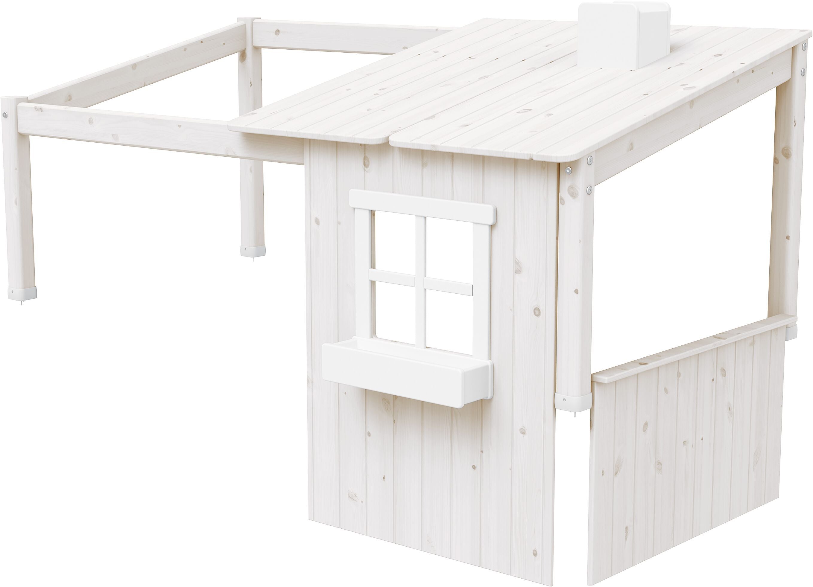 Il tuo bambino riposa già in un letto FLEXA CLASSIC e tu vorresti trasformarlo con un po' di magia in una casetta sull'albero? La struttura FLEXA TREE HOUSE si adatta a qualsiasi letto FLEXA CLASSIC ed è disponibile in diverse varianti. Le mura e il tetto sono in legno di pino, di colore bianco lucido o coprente. Le finestrelle con le cassette di fiori e il comignolo trasformano la cameretta dei bambini in un piccolo paradiso. Gli accessori FLEXA offrono infinite possibilità di valorizzare ulteriormente il letto e allestire a piacere la cameretta dei bambini. Regala al tuo bambino una casetta sull'albero per la sua cameretta: ideale per riposare, giocare e rilassarsi.