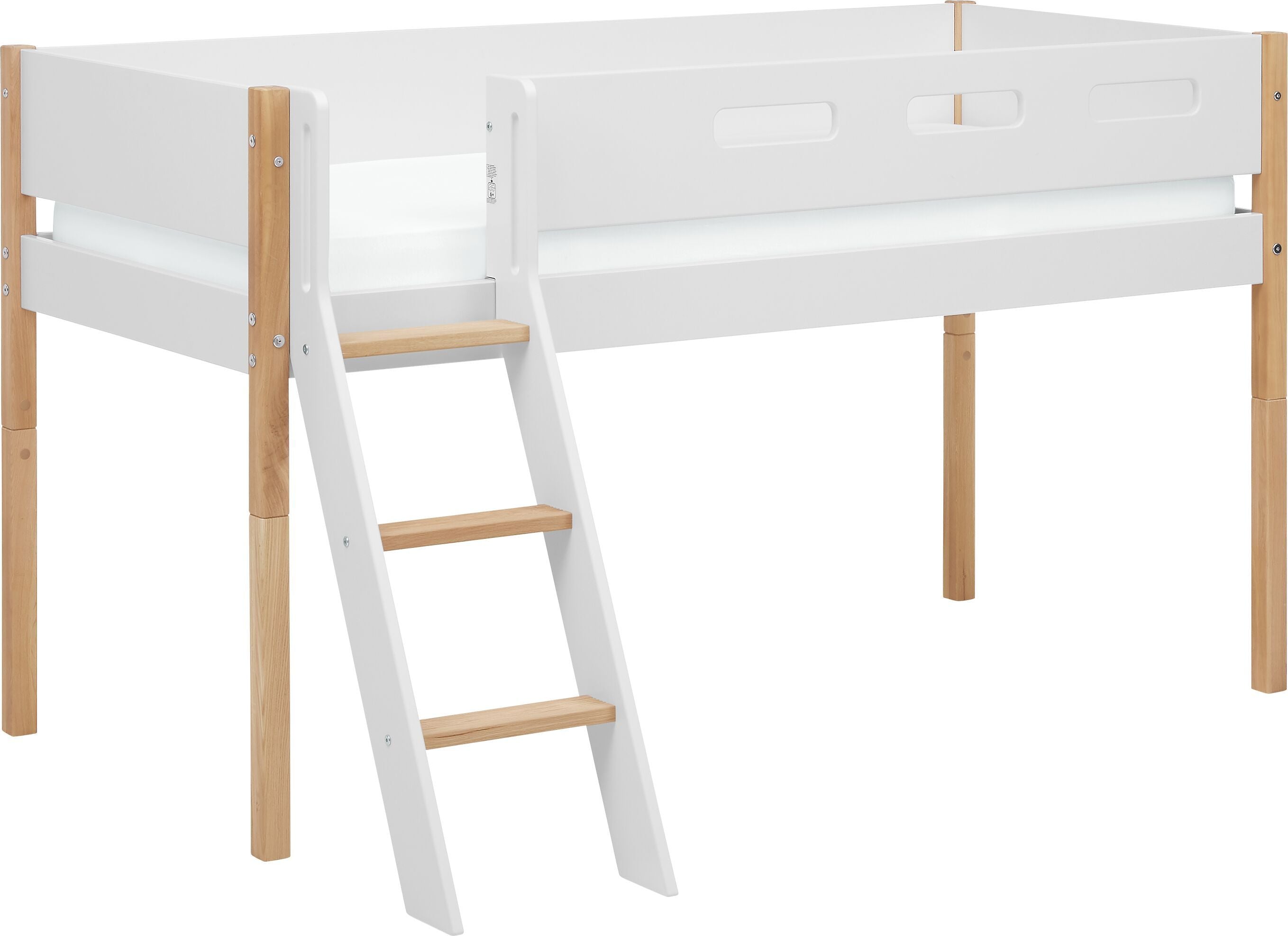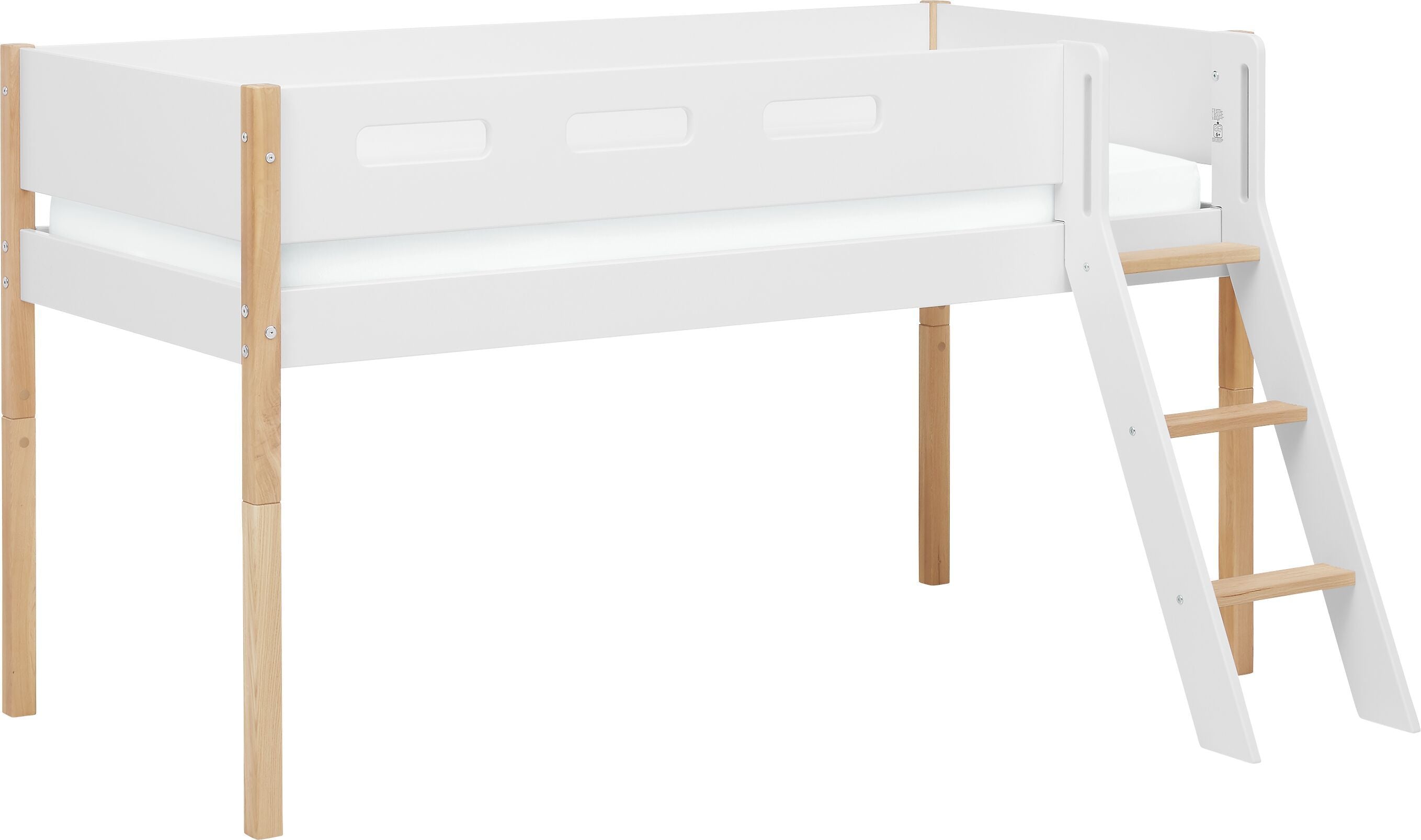 I letti semirialzati consentono al bambino di appartarsi e ai genitori di averlo vicino grazie alla praticità dell’altezza. Nel letto semirialzato FLEXA WHITE il bambino dorme a un’altezza adatta alla sua età. La scaletta gli consente di accedere alla superficie di riposo ben protetta su tutti i lati.